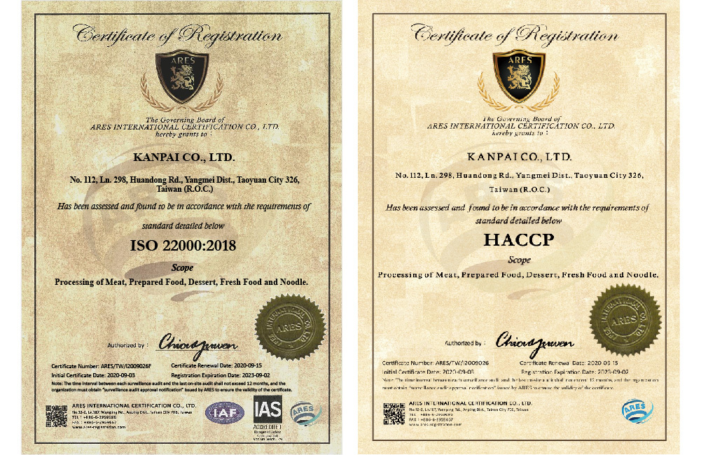 乾杯集團總是用心並朝向最高品質而持續努力。以高規格廠房設備,貫徹肉品全程低溫處理及保存的理念,透過完善的教育制度培育專業肉品處理人員,處理日澳和牛等高附加價值肉品。 中央廠房年年取得 HACCP 與 ISO22000 認證。嚴格執行溯源管理與動物用藥檢驗,堅持將最完美的商品提供給顧客