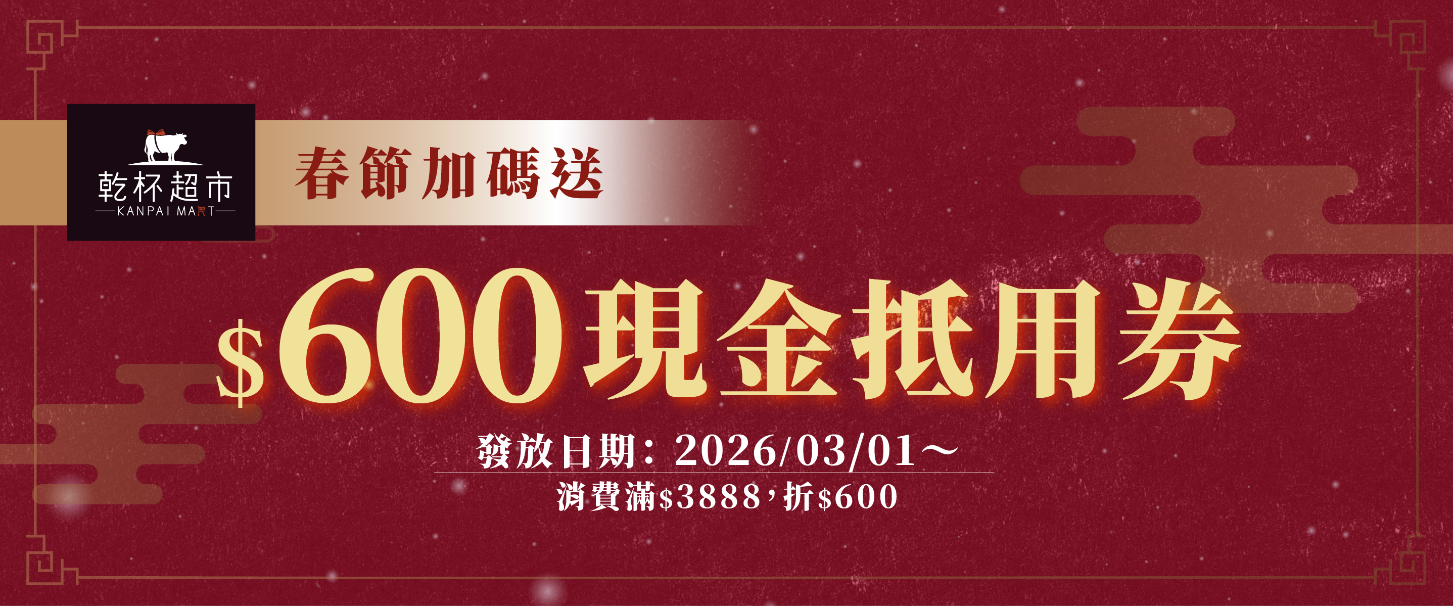 👉消費滿3,888元即可使用一張現金抵用券折抵600元,