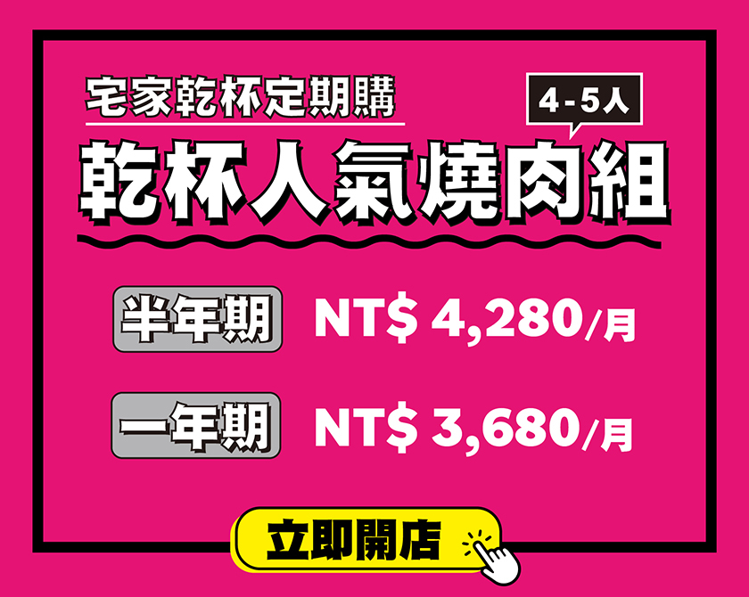宅家乾杯僅提供定期購商品服務,如您有單次訂購需求,歡迎至乾杯超市網站中各品牌商品專區,選購單品或組合商品;惟單次訂購之價格、贈品及商品內容均與宅家乾杯定期購方案略有不同,如:單次訂購燒肉組,內容物未含宅家乾杯特別為您準備的各項贈禮、優惠及雲端互動服務。詳細內容物請依各品牌定期購商品頁說明為準。