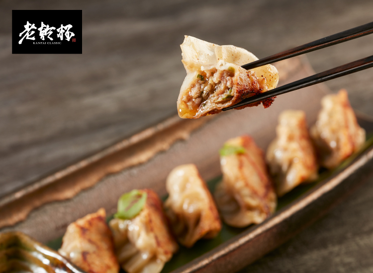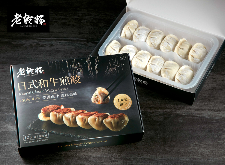 老乾杯日式和牛煎餃以和牛絞肉、韭菜、高麗菜及雞高湯為內餡,滋味豐富不需沾醬即可直接食用。也推薦搭配乾杯萬用燒肉醬、黑毛屋本家橙醋醬油,